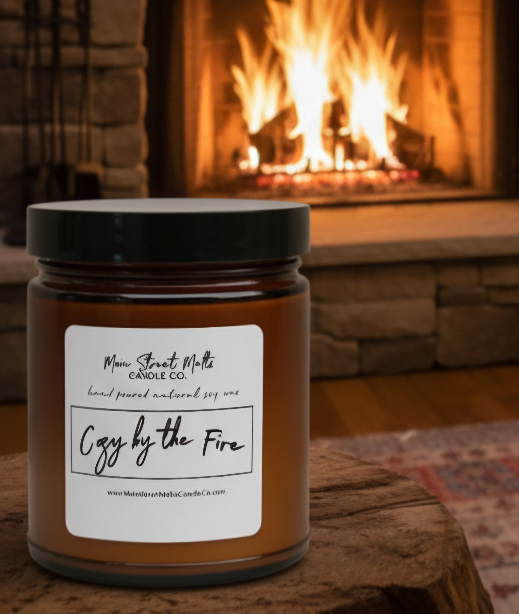 Cozy by the Fire - this nostalgic scent melds notes of smoke and wood into a warm union of clove, amber, sandalwood, and patchouli, top notes of saffron, a base of amber and pachouli, reminiscent of a wood burning fireplace.