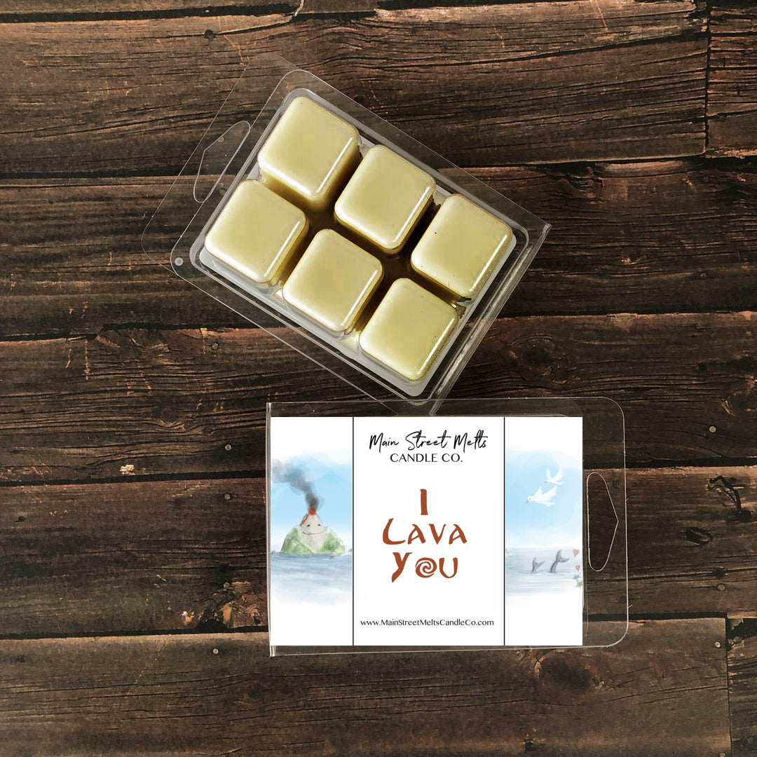 I Lava You - "a tropical lagoon fragrance with hints of smoldering ash, this scent is calming yet refreshing"